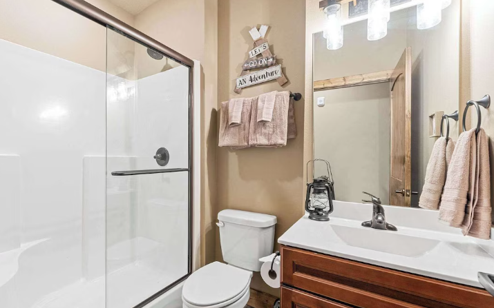 The kitchen has everything needed with a long countertop, island and all the kitchen necessities. I will provide a variety of breakfast offerings each morning. The other meals will be on your own. Branson has about any dining option you could desire if you’d like to eat out. If you want to cook or bring your own lunch or dinner there should be plenty of storage and space for meals. There is island seating as well as outdoor seating if the weather is nice.